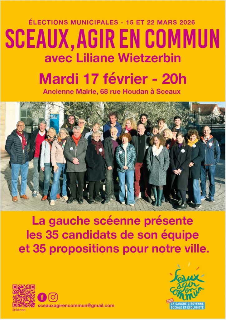 Le 17 février à l’Ancienne mairie, la liste Sceaux agir en commun présente ses candidats et son programme.